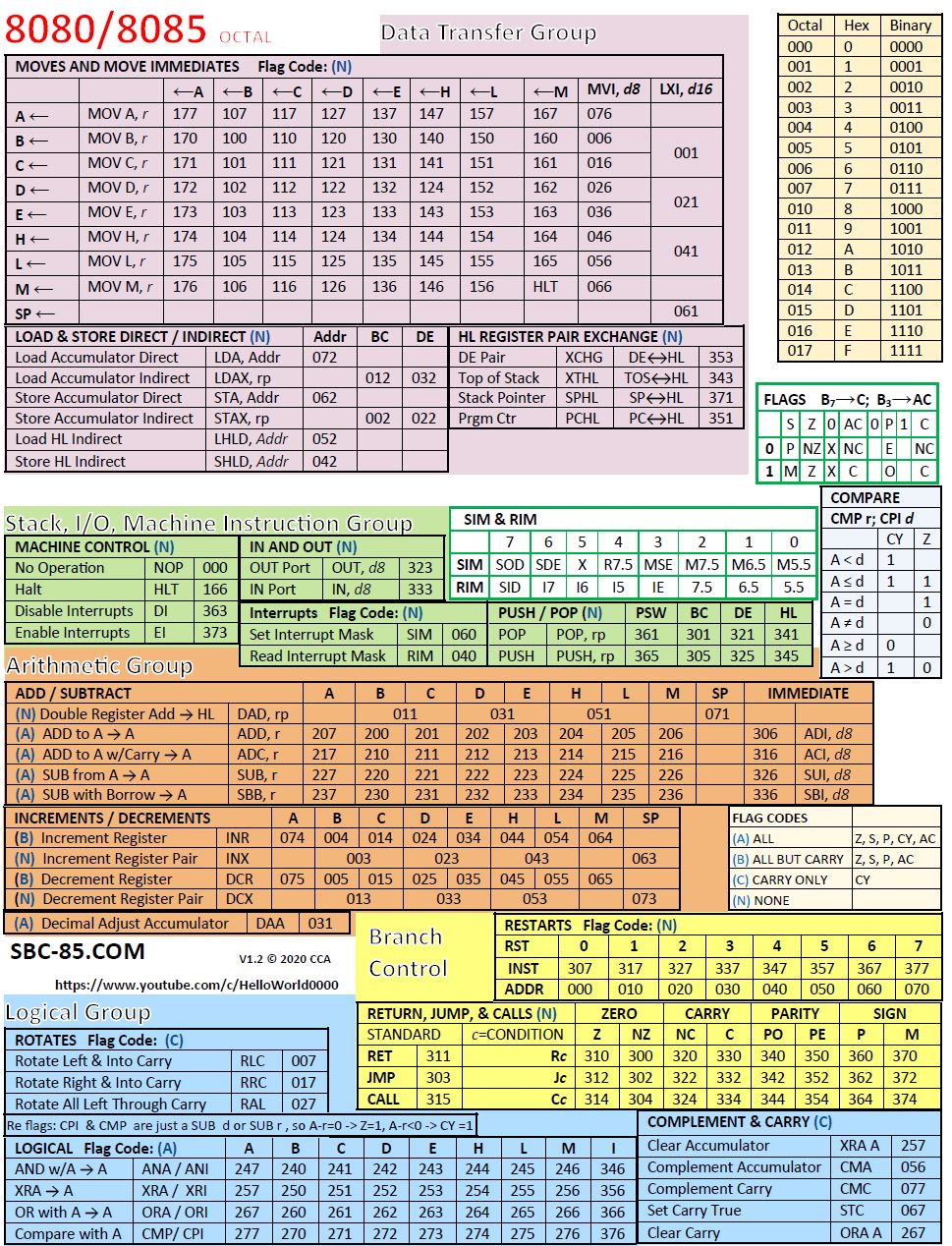 Home » 8085 Reference Card – Octal