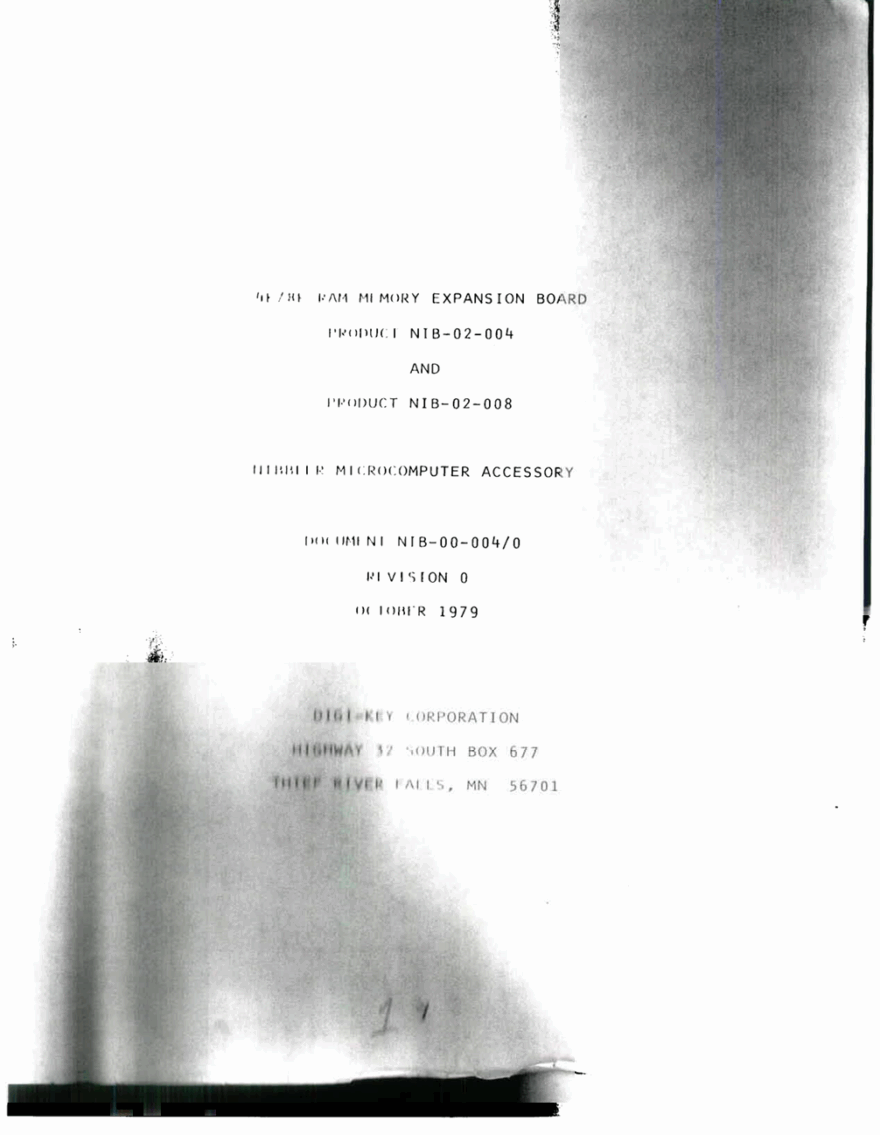 Digi-Key Nibbler 4K 8K RAM Expansion Documentation